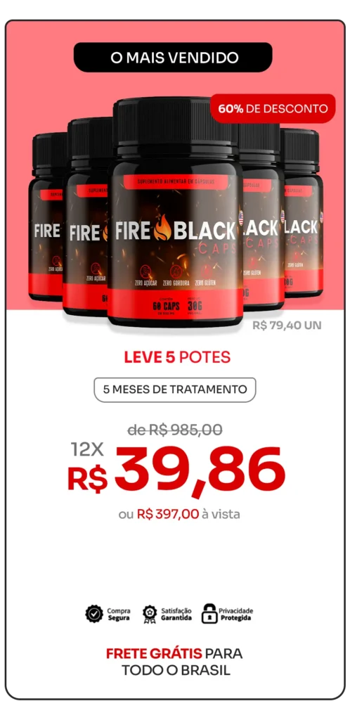 Fire Black Caps , é um suplemento especializado em potencializar a perda de peso de forma saudável. Age como um impulsionador eficaz, estimulando o organismo para combater o excesso de gordura e reduzir medidas.